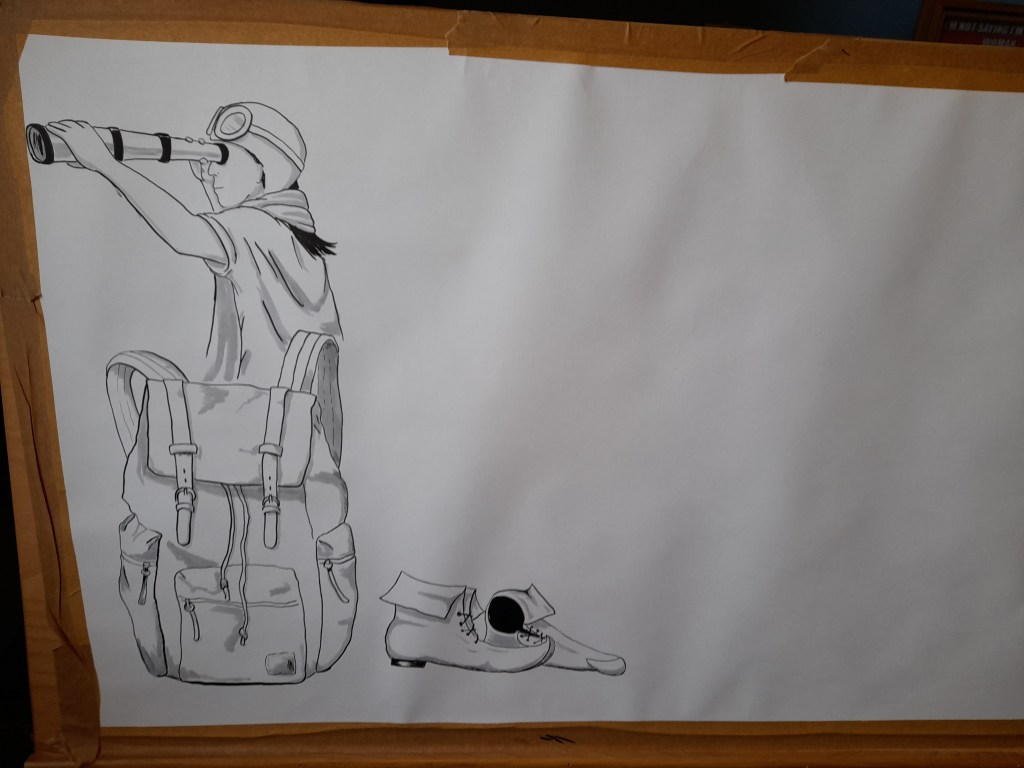 This year I decided to draw everything on one page and set up my drawing board. So far the prompts have been Backpack, Discover, Boots and Exotic.